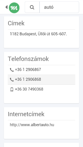 Mobilinfoval kereshetsz például gyógyszertárat, cukrászdákat, éttermeket, optikákat, autószerelőket, gumiszervizeket, állatorvosokat, vízvezeték szerelőket, villanyszerelőket, stb.
