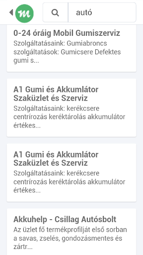 A Mobilinfo segítségével egy pillanat alatt üzletek és szolgáltatások százait érheted el. Mindössze egyetlen kattintással az okostelefonodon. Találd meg az általad keresett céget vagy szolgáltatást. Fusd át a leglényegesebb infókat, nézd meg a címet a térképen vagy akár telefonálj oda azonnal!