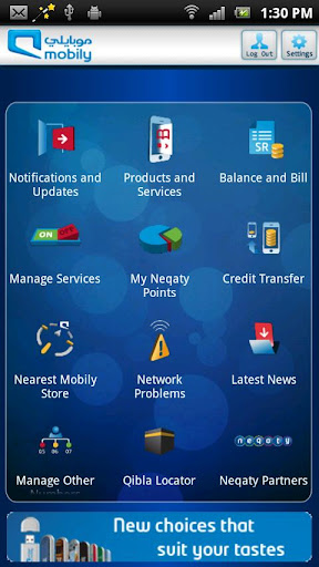 This is the first application of its kind in Saudi Arabia, as no other telecom operator or service provider has presented its users with a comprehensive account management android application. This application offers users access to their Mobily GSM consumer accounts, where they can manage their different services, view their bills and redeem Neqaty loyalty points. Also, users of this application will be able to report any kind of network problem they face, and locate the nearest Mobily shop to wherever they are. Non-Mobily customers can still use this application to read about Mobily’s different products and services, as well as utilizing a free feed form Mobily 3lhawa to check the latest in news and sports.