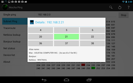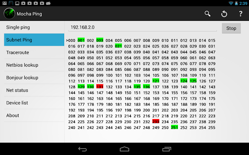 Network Ping is a software test tool for maintaining and debugging network problems on a local area network (LAN). Get an easy view for a full subnet on a single screen. Look at the screenshoots displaying the status for devices 192.168.2.0 - 192.168.2.255. Green and the device is working and red, the device is not any longer on the LAN.