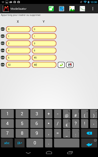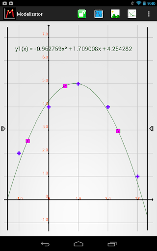 Modelisator permet de trouver la fonction qui modélise un phénomène en ajustant directement le modèle choisi parmi plusieurs courbes prédéfinies. La modélisation se fait sur un nuage de points ou une image importée choisies parmi celles disponibles sur votre appareil.