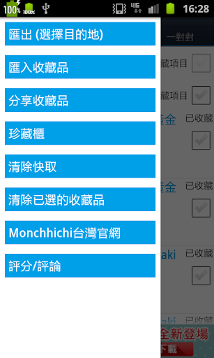- 讓你選擇已擁有的項目,並儲存在手機內