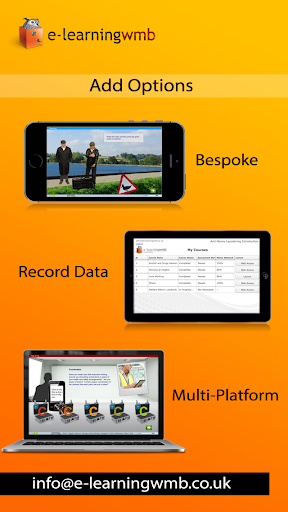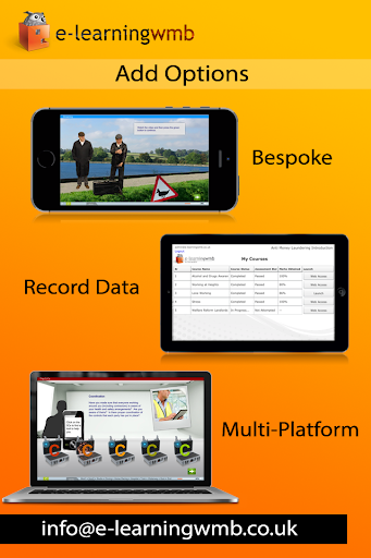 e-Learning WMB can in addition customise this app or create a new app/e-learning course for you to meet your requirements. The e-learning can be launched from any platform (web, app, offline or online) and sync with the Learning Management System, from where the training process can be managed.