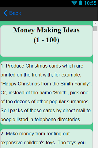Money is the basic necessity for all as one can fulfill all their other needs with the help of it. This amazing Android app Money making Ideas help users to gain ideas on how to earn money in the right way by utilizing their talents and other resources and getting fruitful results. Users can find tips and ideas on how to start a business of their own and get returns out of it. Users may find ideas on making money online and making use of the resources available around them. One can also refer to tips given by experts by learning the various money making processes.