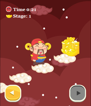 Money Money Om! challenges players to send the god of prosperity or better known as "Cai Shen" to the clouds to get his gold as quickly as possible, before the time is up. And please bear in mind that, you should avoid "Cai Shen" falling from the clouds.