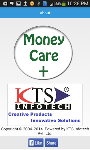 MoneyCare + Application enables you to Track your income and expenses which in turn can generate useful reports as to where the money goes.. The App is designed to have very few Input entry screens (Income Screen, Expense Screen, Reports Screen ) which rightly fits for the mobile phone users. With this minimal input , it can generate powerful reports which can give you an idea regarding where the money goes..