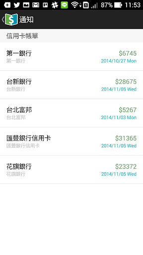 • 繳費通知:Moneybook 會通知您何時該繳信用卡帳單、該繳多少錢。*