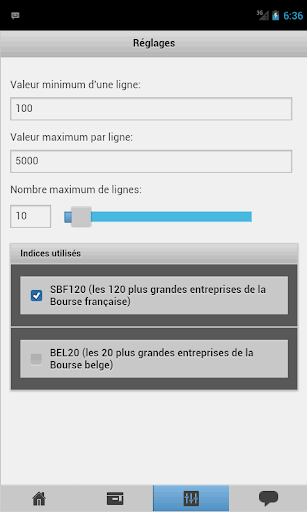 ✔100% Made In France, l’application est en bon français et constitue ses portefeuilles à partir de l’indice SBF120 et du BEL20.