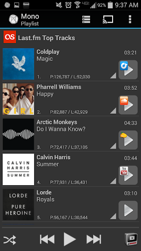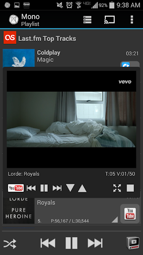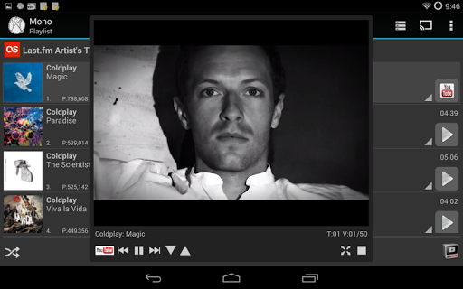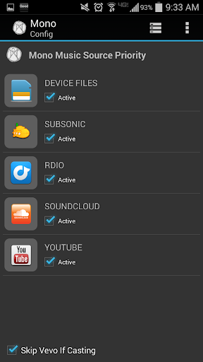 Mono is for discovering and listening to music. It gives you access to the entire world of artists, their releases, their top tracks and their media. You can configure and prioritize music sources for playback, including your local files, Rdio, Soundcloud, Subsonic and of course YouTube - either on your device or on Chromecast. You can also view artist bios, images, concerts and similar artists and build, save and share playlists easily.