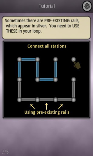 The object of each puzzle is to create a single loop (closed path) of rails connecting all stations so the monorail can circle around endlessly.