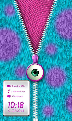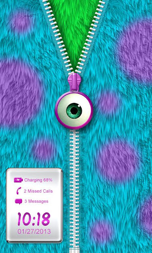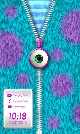 New Fun Monster Fur Style! Inspired by everyone's favorite animated monster movie! Unzip the fun with this teal and purple furry lock screen. Made specifically for Go Locker.