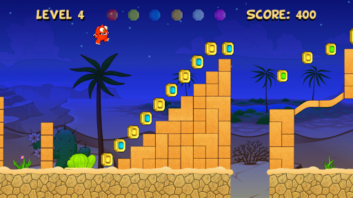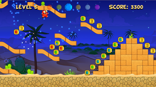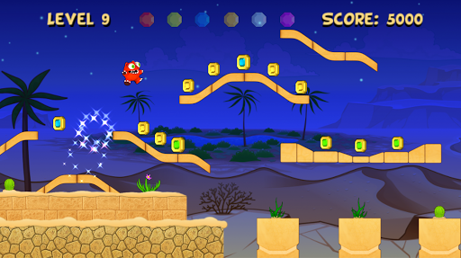 Run and jump over the ruins in the desert, while collecting gems and gold coins to increase your score and dash towards the finish of every level.