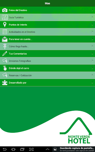 La aplicación del Hotel Monte Verde te permite, de forma ágil y cómoda, conocer nuestros servicios, reservar, cotizar e interactuar con nosotros y mejorar tu experiencia en el destino cafetero. A través de las diversas herramientas que vienen en la aplicación te damos a conocer las actividades y eventos próximos, información sobre puntos de interés, tips y la guía turística del Eje Cafetero con excelentes alternativas de restaurantes y alojamientos. Con la opción de nuestra aplicación ¿dónde dejé mi carro?, puedes encontrar fácilmente tu carro en el lugar donde lo hayas estacionado. También puedes compartir tus fotos de viaje, comentar y enviar esta aplicación a familiares y amigos.