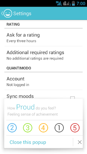 MoodiModo makes tracking of one’s mood effortless by using a unique pop-up reminder interface. This allows the you to rate your mood in a fraction of a second at regular intervals.
