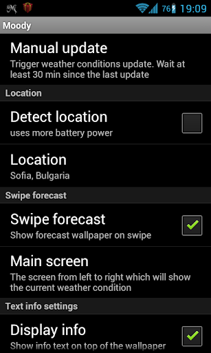 Moody is interactive and customizable live wallpaper. It changes with the weather conditions wherever you are. You can choose between the icon sets we are offering or put your own image to type of weather condition. Moody can visualize 11 types of weather for night and day.