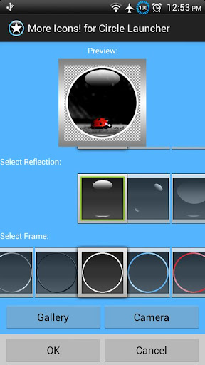 This icon pack allows you to choose from many different icon colors as well as hundreds of icon symbols. You won't find another icon pack that allows this much control. This is the only app that allows you to use your own photos from your gallery and crop them as circles to use as icons(most crop them as squares). You can even pick your icon's frame and light reflections.