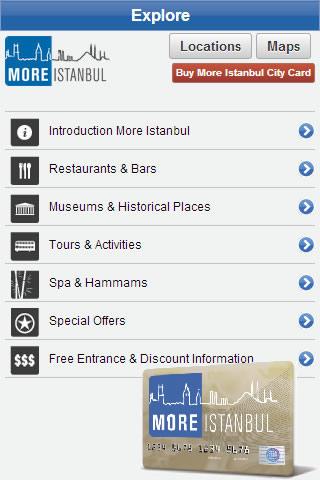 More Istanbul android uygulaması ile indirim kazanabileceğiniz restoranlar, cafeler, barlar, spa ve hamamlarla birlikte tarihi mekanları görüntüleyebilir ve İstanbul'u doyasıya yaşayabilirsiniz.