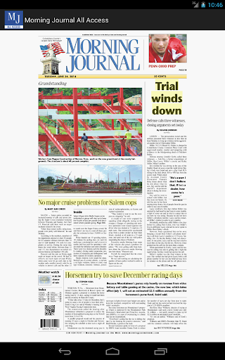 Stay on top of news from Lisbon and surrounding areas by receiving the full print version of the Morning Journal on your Android device. Every page of every edition is delivered to your device. The Morning Journal is the best source for local and national news, sports, weather and features in Lisbon and Columbiana, Jefferson, and Mahoning counties in Ohio and Hancock County in West Virginia. Download the app to view the printed pages of the newspaper or read headlines and stories along with related photos in a built-in story viewer.