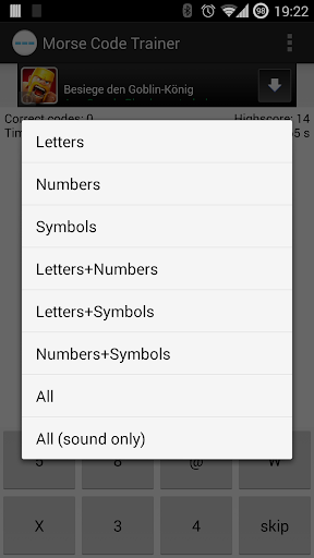 Morse Code Trainer will show and play you random letters in morse core and you have to recognize them. If you're correct, the next morse code appears. If you make a mistake, just try again. It's a very simple but practical tool.