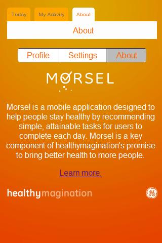 Morsel, part of GE Healthymagination, is a mobile application that helps people get a little bit healthier, every day. By suggesting simple, daily tasks that anyone can do, Morsel empowers you to take control of your well-being, one step at a time.