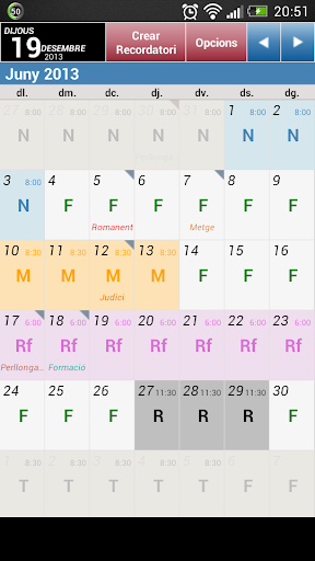 - Podràs realitzar cerques entre dues dates de qualsevol recordatori.