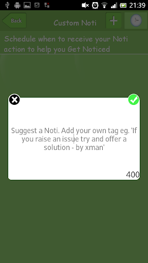 Set a schedule for when you would like to be notified of your Noti action quote so that you can work on it ie if daily set it for some time in the morning so you can work on it during the day.