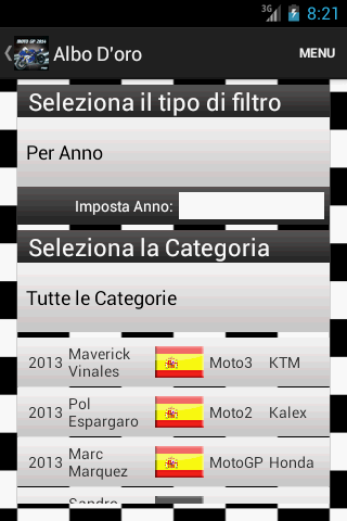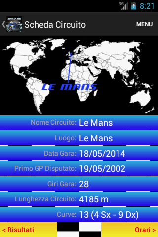 - Circuiti con le info e gli orari delle prove, qualifiche, gare e i risultati