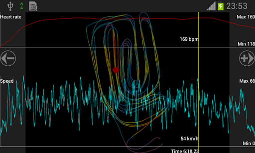 Ti permette di analizzare le sessioni in pista in termini di tempi su giro, traiettorie, velocità e andamento delle pulsazioni cardiache (è necessaria una fascia cardio Zephyr HxM BT).