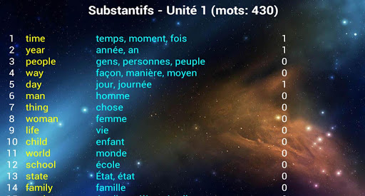 La maîtrise du vocabulaire représente l’une des difficultés les plus fréquentes de l'apprentissage d'une langue étrangère. Il est prouvé que 4000-5000 vocables les plus utilisées font 95 % du langage écrit et 1000 vocables les plus utilisées font 85 % du langage parlé. «Mots anglais» contiennent 5000 vocables les plus utilisées en anglais. Vous ne devez pas les remémorer, tout ce que vous avez à faire c'est juste jouer, le reste est à votre cerveau. La méthode est efficace malgré même l’imperfection de votre mémoire.
