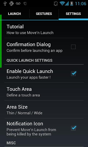 Using the 'Quick Launch' mode, you can easily call Move'n Launch, execute your gesture, and launch any application ...