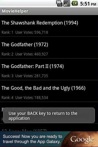 You can also click on the randomly selected movie to get additional details from the Internet or alternatively you can pick a movie from the list of top movies. Holding down on any title in the list will also load additional information.