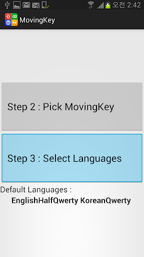 MovingKey icon --> Step 3 button --> language selection --> Qwerty, Half Qwerty, or Qetuo