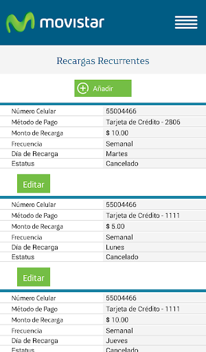 - Muestra un historial completo de las recargas realizadas.
