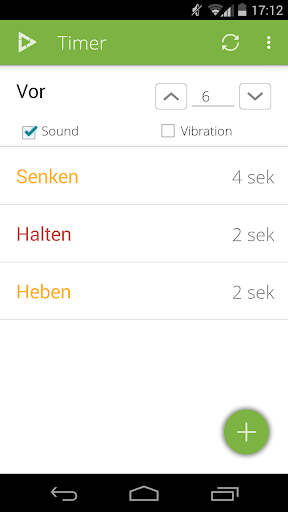 ...besteht aus mehreren Phasen, die du selbst und individuell einstellen kannst. Zum beispiel kannst du bei Tabata eine Pause- und eine Powerphase festlegen. Natürlich kannst du unterschiedliche Farben, Namen, Längen, Soundoptionen usw. einstellen. Für Intervalltraining ist übrigens das Vollbild-Querformat vorgesehen wenn der Timer läuft.