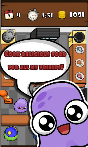 Now the cute little alien monster Moy is back, but this time he runs a restaurant!