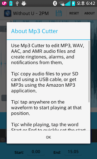 Use Mp3 Cutter to edit MP3, WAV, AAC, and AMR audio files and create ringtones, alarms, and notifications from them.