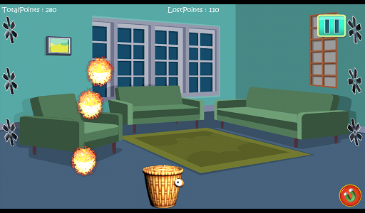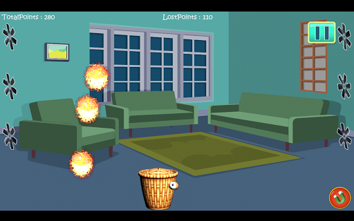 Mr.Bin is so hungry that he will eat anything, but as a well-wisher of Mr.Bin we have to make sure that he doesn't become sick, so we have to feed only the good stuff. Some are not happy with Mr. Bin eating and they want to keep him hungry, so fireballs are thrown to incinerate him. Make sure Mr. Bin does not get incinerated. Mr. Bin will give points and rewards to those who keep him happy and well fed.