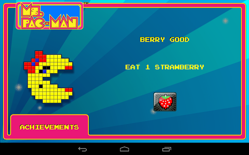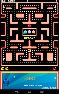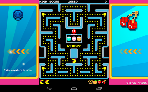 Re-live the retro action on your device with the queen of the arcades! Move Ms. PAC-MAN with three different control modes! Navigate through the mazes by swiping in the preferred direction or touching the onscreen Directional Pad. Chomp on dots with the swipe of a finger in Swipe Mode. Munch fruits and other items for big points! Chomp all of the dots to advance to the next stage. Go for high scores and high levels! Gain an extra life at 10,000 points!