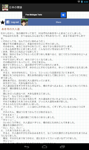 MukashiBanashi (昔話) là ứng dụng tuyển tập các câu chuyện cổ tích của nhật bản, được hiển thị hoàn toàn bằng tiếng nhật, có hỗ trợ âm thanh.
