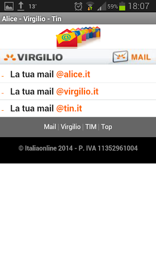 Tiscali, Libero, Yahoo, Alice, Virgilio, Tin, Gmail, Aruba, Aruba PEC, LegalMail PEC, Governo PEC