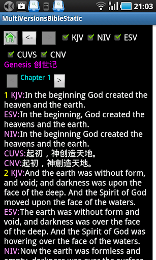 This is previous version of Multi-versions Bible. I strongly recommend you download Multi-versions Bible, which has much more features. If you do have problem using Multi-versions Bible, please send me a Email. Thanks