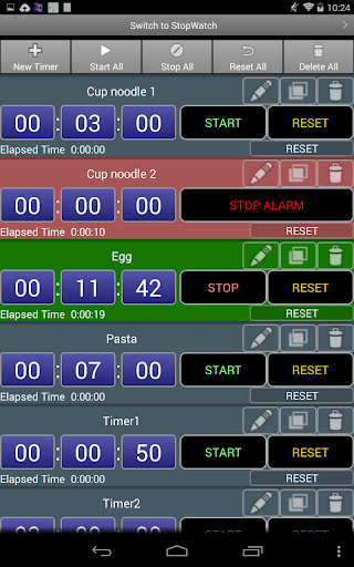 This application is very convenient when you want to measure time of more than one thing at the same time! For example, boiling pasta for 6 minutes, eggs for 15 minutes.
