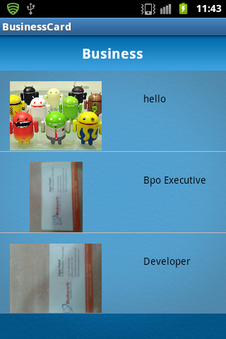 * With Business Card, you can easily search, sort, group, share your cards on to any social application you have installed on your phone.