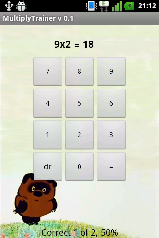 Convenient and simple simulator for training and test knowledge of the multiplication table will help children quickly get accustomed to memorizing the multiplication table in the form of a curious game. Every 10, 20, 40, 60, 80, 100, 300, and 500 consecutive correct answers you can see congratulations on achievements and praise for the new student achievement in mathematics. The user can see the statistics of correct and incorrect responses in a single round.