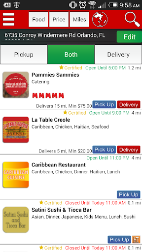 - Filter your search by cuisine type, price range, or by the purpose (Delivery & Take Out).