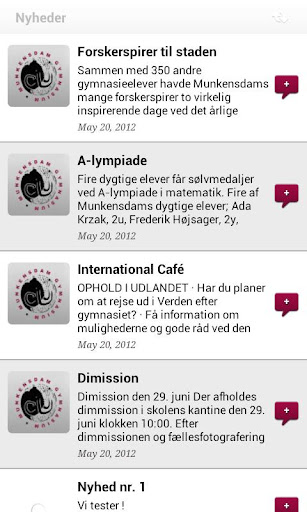 Med Munkensdam Gymnasiums officielle smartphone applikation, får du alle de seneste nyheder og informationer lige ned i hånden.