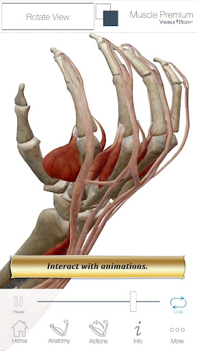 ***** 内含数百条肌肉、骨骼、韧带和神经,每一条都配有定义和发音。运动中的几百条骨骼和肌肉。所有这些解剖结构都是真正的三维模型。任何其它应用程序都无法与其媲美!