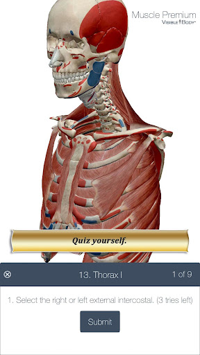 ***** 肌肉保费是完整的 3D 互动式潜水入人体的肌肉。它包括数以百计的肌肉、 骨骼、 韧带、 神经。使用此应用程序进行通信有关的肌肉、 其附件、 髓和行动的深入信息。