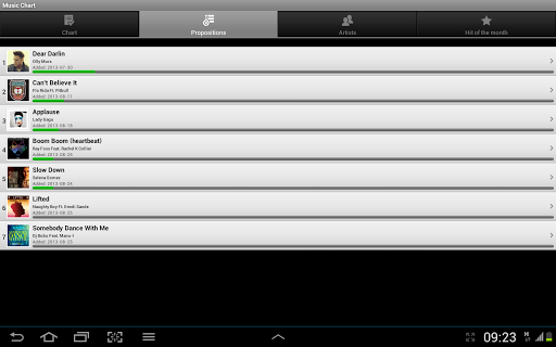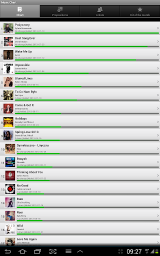 Search your artist, then select, vote or watch on YouTube the video of the song you are interested in (it is adviced to install YouTube app from Google Play first. Although it isn’t necessary, you will gain an access to the music clips).
