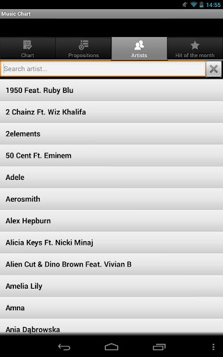 Artists – a list of all songs that have ever been added to the Music Chart.